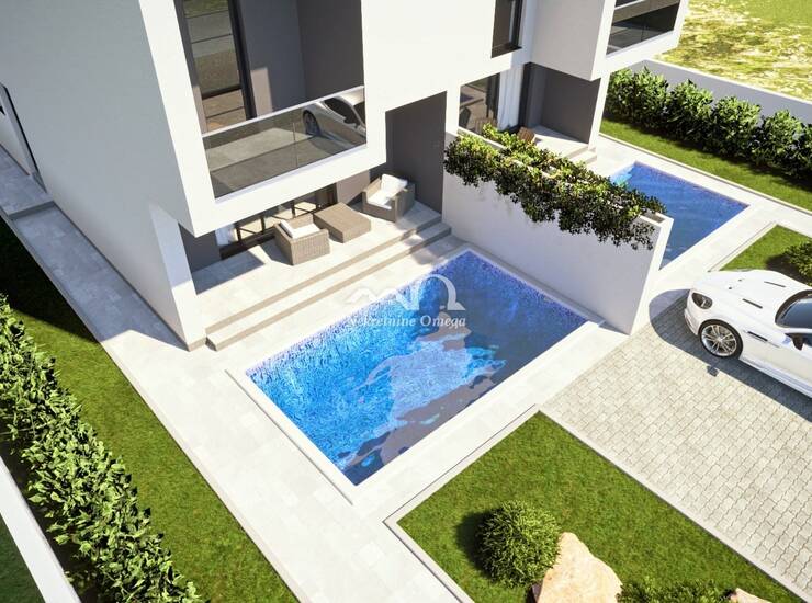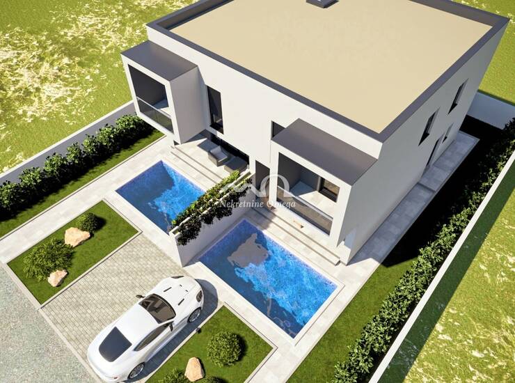 VODICE, DVOJNI OBJEKT S BAZENOM, POGLED NA MORE