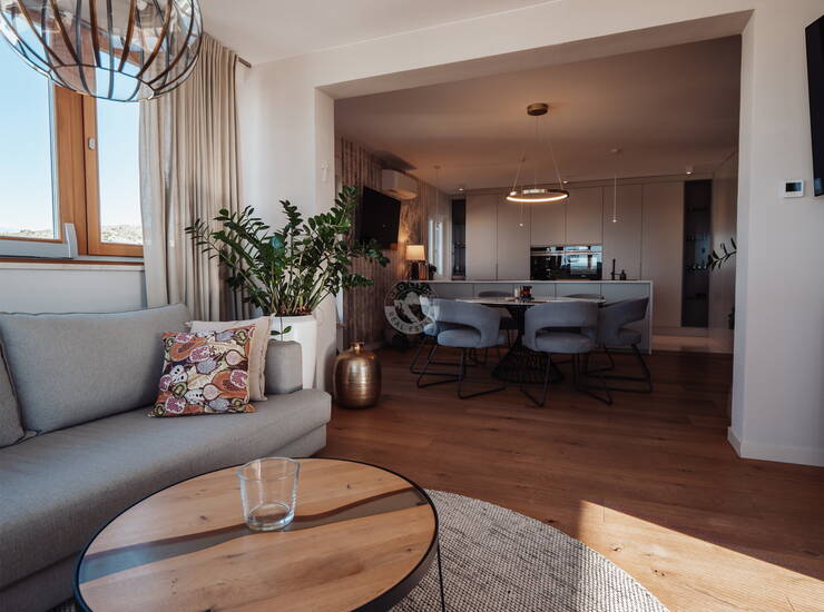 Stan se ističe promišljenim rasporedom prostorija, dvjema prostranim terasama orijentiranim na jugozapad i jugoistok, te svijetlim, otvorenim dnevnim prostorom s kuhinjom i blagovaonicom.