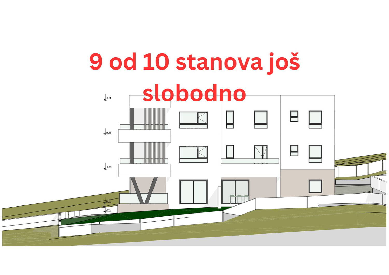 Svaki stan ima vlastitu terasu, spremište u podrumu te privatno parkirno mjesto odmah uz zgradu.