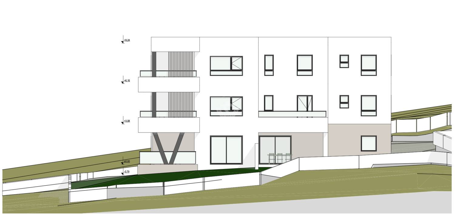 Zgrada je izgrađena od kvalitetnih materijala, u modernom arhitektonskom stilu, s naglaskom na udobnost i funkcionalnost.