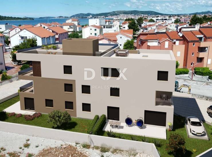 ŠIBENIK, SRIMA – NOVOGRADNJA, Trosoban stan s velikim vrtom, 70 m od mora – rijetkost na tržištu!