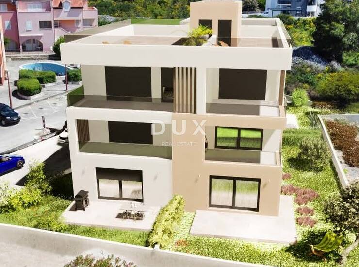 DUX predstavlja moderan stan S3 smješten u novogradnji s ukupno osam stambenih jedinica, na izuzetno atraktivnoj lokaciji u Srimi, svega 70 metara od mora i plaže, u drugom redu od mora.