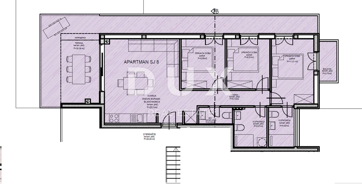 Ono što ovaj stan čini još posebnijim jest krovna terasa koja pruža izvanredan pogled na okolinu. Na terasi možete uživati u suncu, organizirati druženja ili jednostavno opuštanje na svježem zraku. Sve ove karakteristike čine ovaj stan idealnim mjestom za udoban i ugodan život na atraktivnoj lokaciji blizu mora.