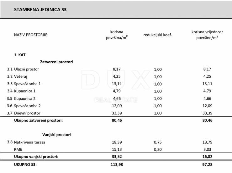 Prostrani dnevni boravak okupan prirodnim svjetlom otvara se prema vanjskoj terasi, stvarajući skladnu cjelinu unutarnjeg i vanjskog prostora. Kuhinja i blagovaonica funkcionalno su povezane s dnevnim dijelom, a spavaće sobe smještene su u zasebnom dijelu stana, što jamči tišinu i udobnost. Kupaonice su moderno uređene, a svaki kutak stana promišljeno dizajniran kako bi zadovoljio i najzahtjevnije estetike.