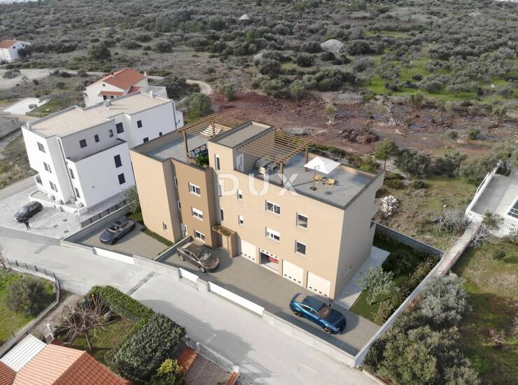 ŠIBENIK, VODICE – Trosobni stan u novogradnji s garažom, spremištem i krov