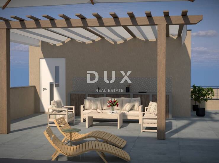 No ono što ovu nekretninu izdvaja na tržištu je krovna terasa od čak 102 m² s panoramskim pogledom na more – prostor koji lako postaje vaša privatna oaza: