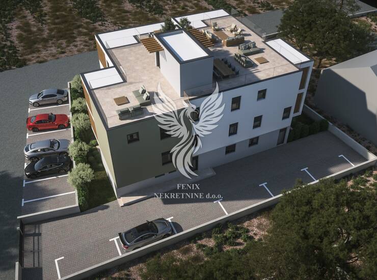 Prodaje se izvrstan apartman u prizemlju zgrade u Vodicama, u blizini svih važnih sadržaja za život. Apartman se nalazi u modernoj novogradnji, koja se gradi prema zadnjim standardima gradnje. Sam apartman se sastoji od ulaznog prostora, dviju spavaćih soba, hodnika, kupaonice, wc-a, kuhinje s blagovaonicom i dnevnim boravkom, prostrane terase i vrta. Apartmanu pripada i jedno vanjsko parkirno mjesto koje je uračunato u cijenu i kvadraturu. Predviđeni završetak je prvi kvartal 2026. godine. Papiri građenja i vlasništva su uredni. Kupac ne plaća porez na promet nekretninama, kao ni PDV (investitor je pravna osoba), te u koliko ispunjava uvjete može dobiti i povrat od 12 % PDV-a koje plaća investitor.