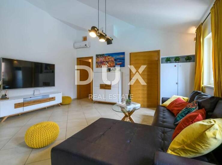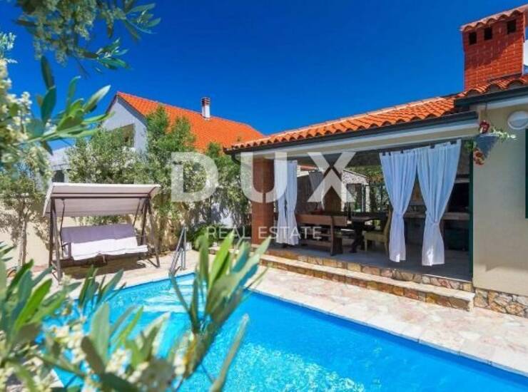 Opremljena je s tri udobne i tople spavaće sobe, zatim i tri prostrane kupaonice. Zasigurno će Vas očarati svijetao i prostran dnevni boravak idealan za druženja s obitelji i prijateljima, prostrana blagovaonica, te potpuno opremljena kuhinja s modernom aparaturom u kojoj možete pripremati najukusnije delicije. Iz dnevnog boravka proteže se izlazi se na prekrasnu vanjsku natkrivenu terasu i vrt, gdje ćete sigurno provoditi vrijeme odmarajući uz čašu najdražeg vina ili jutarnje kave.