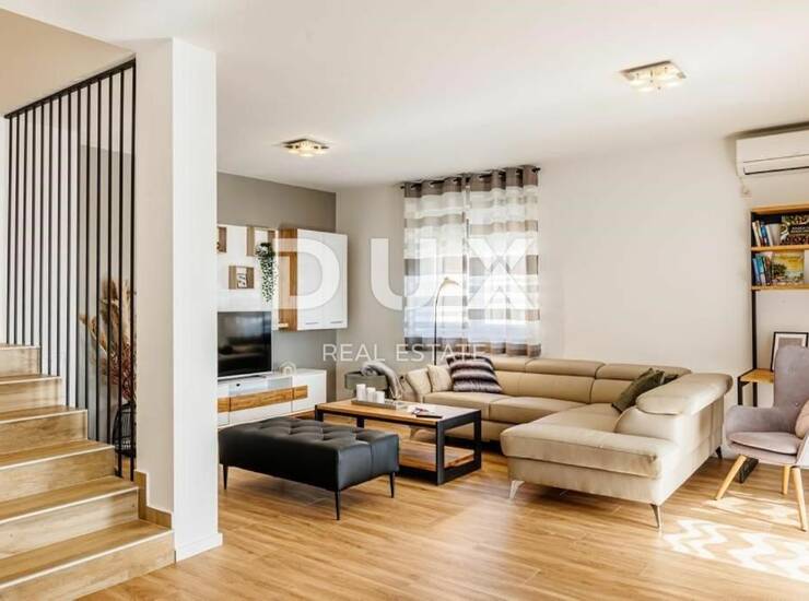 Riječ je o vili koja se sastoji od sveukupno 180m2 stambenoga prostora, a koji se dijeli na dvije etaže, prizemlje i kat.