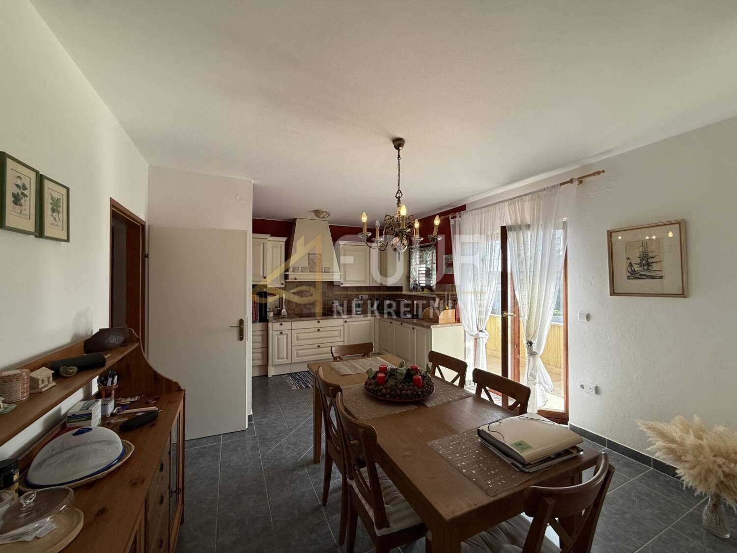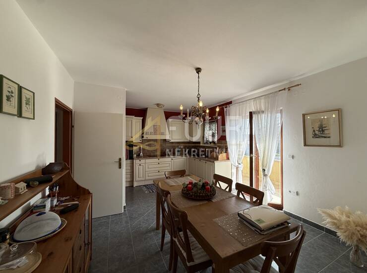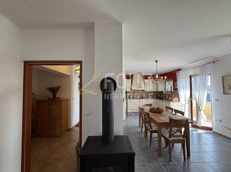 Kuća ima više terasa i balkona, kamin, klimu, drvenu stolariju, konobu te tri parkirna mjesta. Prodaje se namještena.