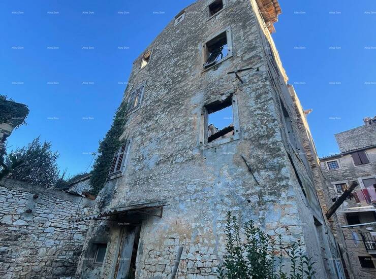 Ova višekatnica, iako u ruševnom stanju, odiše karakterom i autentičnim istarskim šarmom. Građena u tradicionalnom stilu s očuvanim kamenim zidovima, predstavlja izvrsnu osnovu za stvaranje ekskluzivne kuće za odmor.