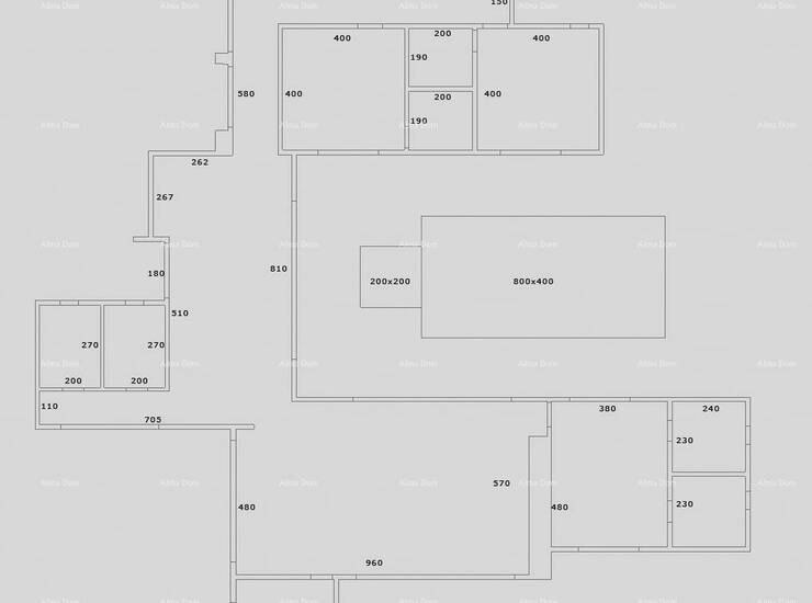 Pored ulaznog dijela, malim hodnikom doći će se do gostinjskog wc-a i kotlovnice u kojoj će biti smještena perilica i sušilica rublja, bojler i ostali uređaji. U nastavku ulaznog hodnika sa desne strane dolazi se do glavnog "open space" dnevnog boravka od 55m2, koji će imati izlaz na bazen i na natkrivenu terasu sa sjedećom garniturom, plinskim kaminom i kuhinja sa kuhinjskim otokom. sa otokom. Pored kuhinje biti će ostava, a niz dnevni boravak kroz skrivena vrata ući će se u "master bedroom"-glavnu spavaću sobu, koja će imati površinu od 20 m2 sa kupaonicom i walk in garderobom.