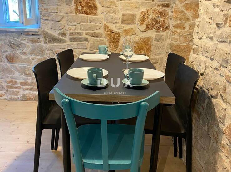 Vlastiti vanjski prostor – intimno dvorište/terasa – dodatno ističe atraktivnost ove nekretnine, pružajući idealan prostor za opuštanje i uživanje u mediteranskoj atmosferi. Kuća je već uključena u turistički promet, što osigurava stabilan prihod i visok investicijski potencijal.