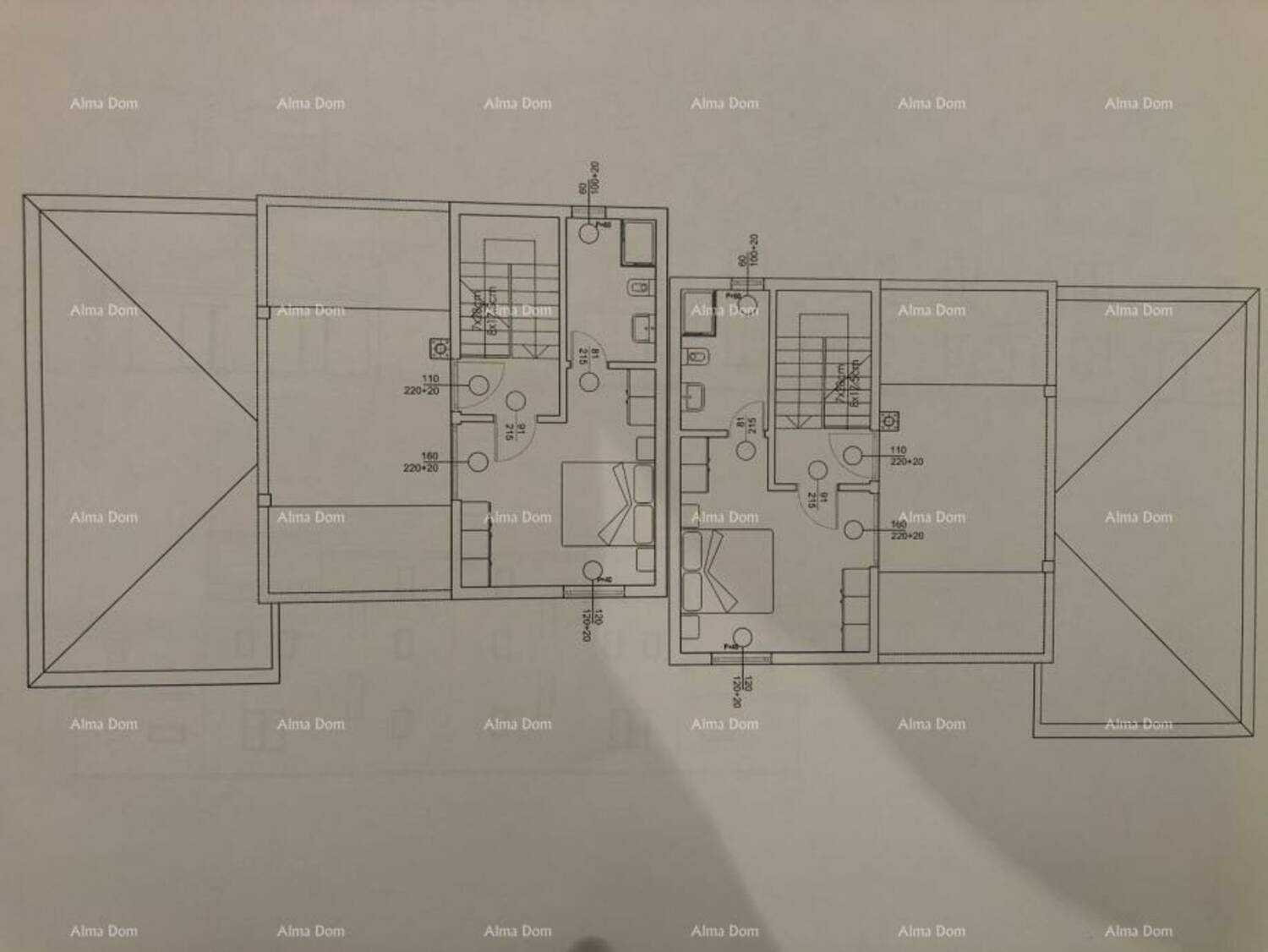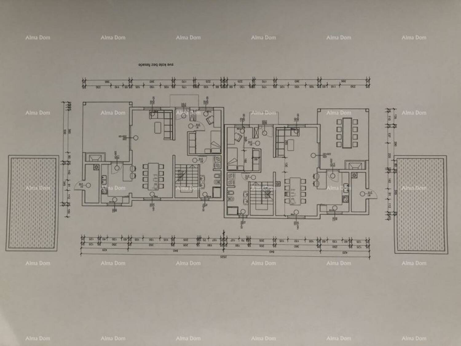 Odlična prilika za kupnju kuće za život ili za najam . Duplex kuća se nalazi na parceli površine 1233,15m2 i sastoji se od dvije jedinice čija je neto površina cca.322m2, a koje imaju odvojene ulaze. Svaka jedinica se sastoji od: prizemlja (kuhinje, blagovaonice, dnevnog boravka, prostorije koja može biti spavaća soba ili ured, te pripadajuće kupaonice; prvoga kata (dvije spavaće sobe sa odvojenim kupaonicama) i mansardom (spavaća soba sa kupaonicom, izlaz na balkon). Kuća ima natkrivenu terasu sa roštiljem, ostavu i toalet, te izlaz u dvorište sa bazenom.