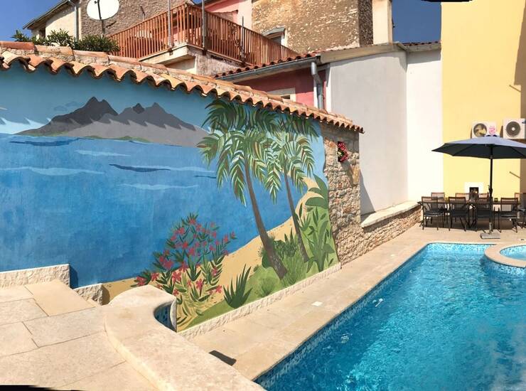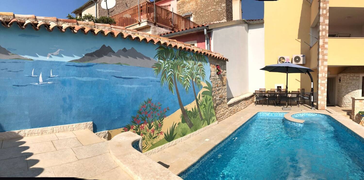 Unutar okućnice smjestio se prekrasni bazen s vodo