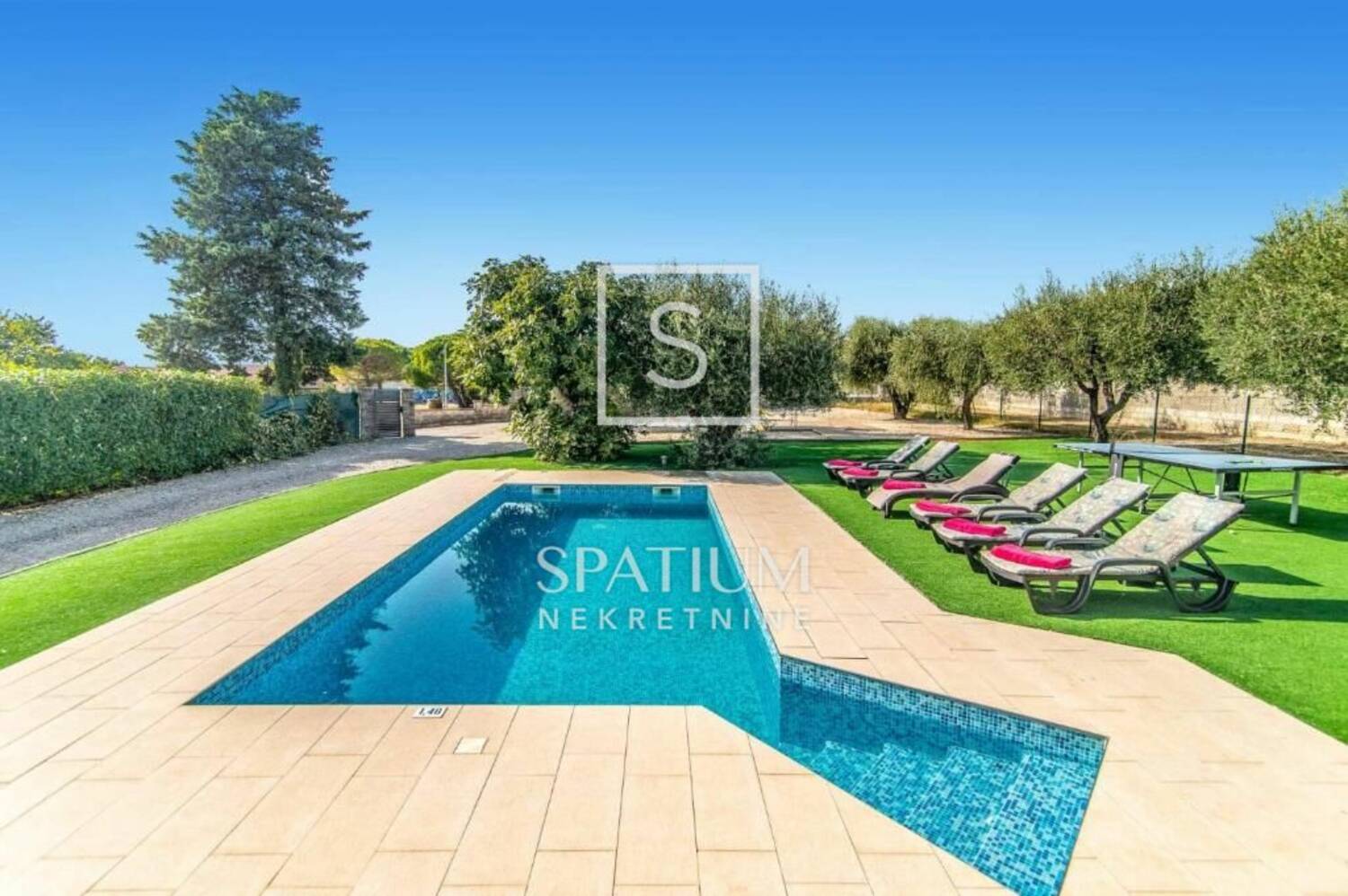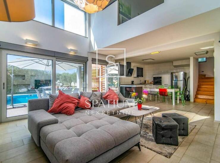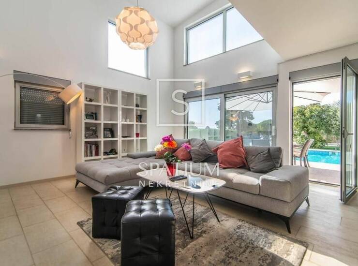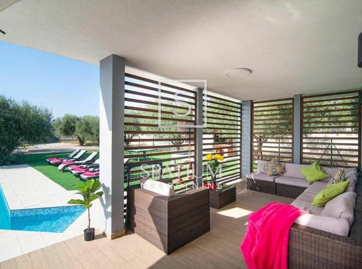 VODNJAN, u ponudi imamo modernu vilu smještenu na jedinstvenoj i mirnoj lokaciji, koja predstavlja savršen spoj luksuza, privatnosti i funkcionalnosti. Vila se prostire na 173 m² potpuno opremljena i namještena, a smještena je na velij i lijepo uređenoj okućnici od 1.294 m² koja odiše mediteranskim šarmom. Interijer čine tri prostrane, klimatizirane spavaće sobe ispunjene prirodnim svjetlom, elegantno uređeni dnevni boravak te moderna kuhinja povezana s blagovaonicom. U dvorištu se ističe grijani bazen sa sunčalištem, idealan za korištenje tijekom cijele godine, kao i sedam parkirnih mjesta. Posebnu vrijednost dodaje i njegovani maslinik u dvorištu, koji godišnje daje 20 do 30 litara vrhunskog maslinovog ulja. Vila se već više godina uspješno iznajmljuje, s dokazanim prihodima i bazom stalnih gostiju, što je čini odličnim izborom kako za osobno korištenje, tako i za investitore koji traže sigurnu i isplativu turističku nekretninu.