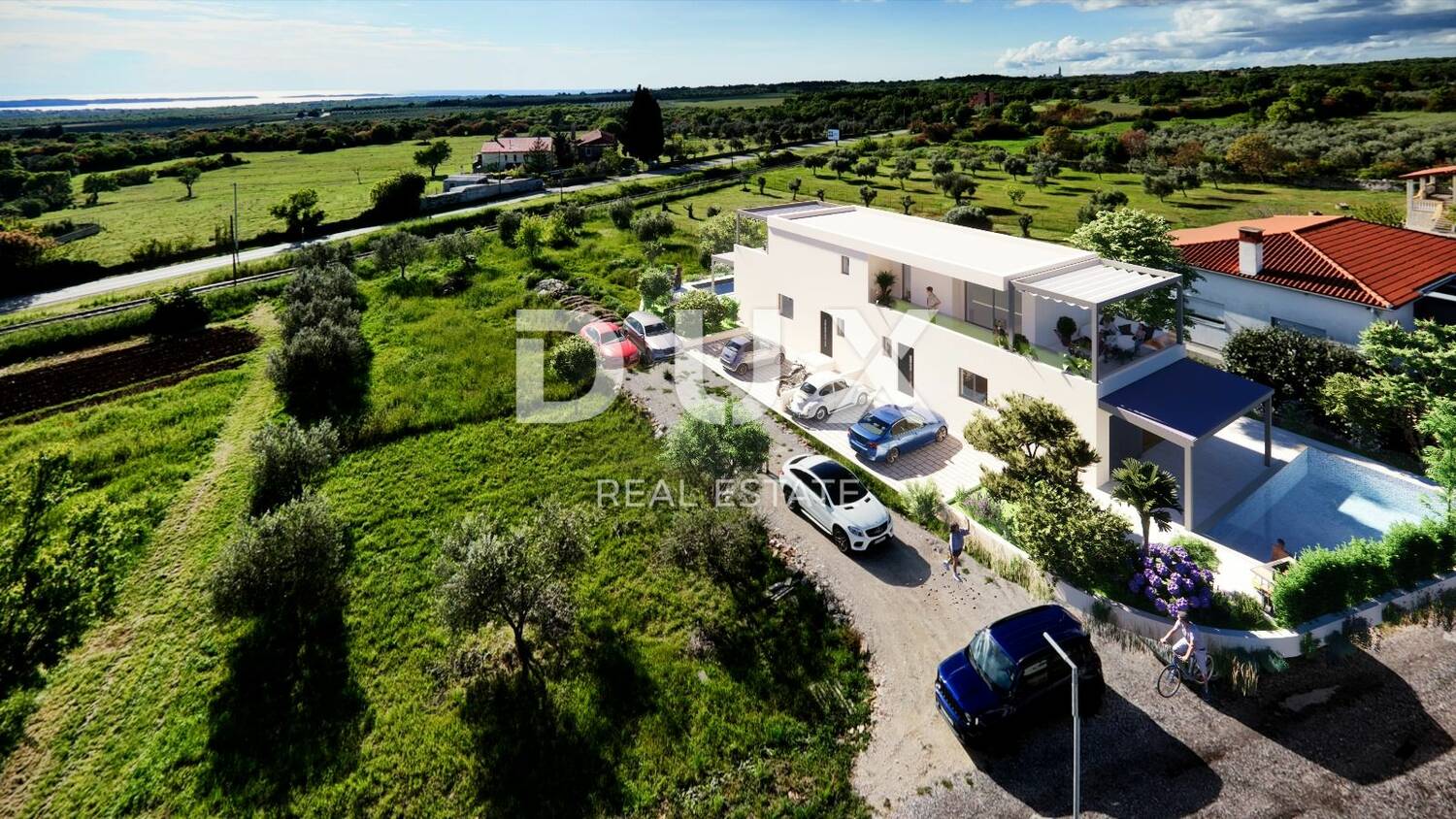 ISTRA, GALIŽANA - Građevinsko zemljište s izdanom građevinskom dozvolom za izgradnju moderne vile na mirnoj lokaciji s neponovljivim panoramskim pogledom na more i otočje Brijuni, a sve to već s prizemlja vile.