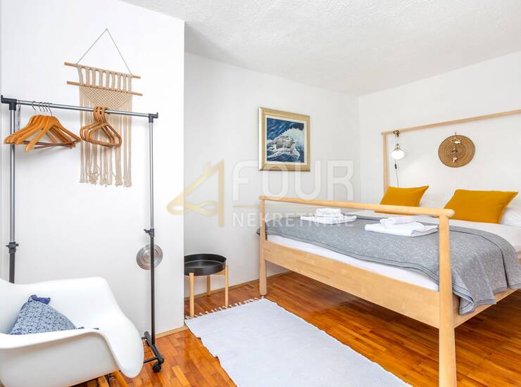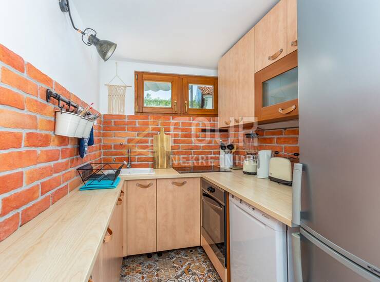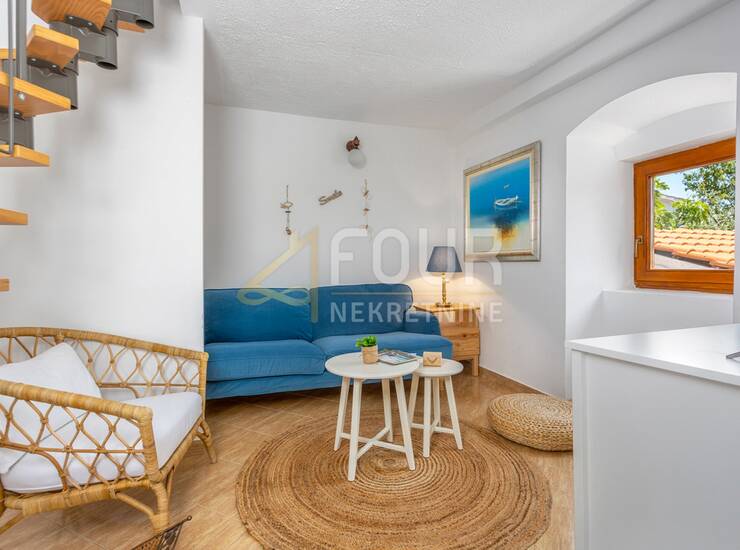 Sastoji se od dva potpuno odvojena dvoetažna stana s posebnim ulazima, što je čini idealnom za zajedničku kupnju dviju obitelji ili kao investiciju za turistički najam. Prvi stan obuhvaća prizemlje s hodnikom, kupaonicom te dnevnim boravkom povezanima s kuhinjom i blagovaonicom, dok se na katu nalaze dvije spavaće sobe. Drugi stan raspoređen je na katu i potkrovlju te uključuje dnevni boravak s kuhinjom, kupaonicu i spavaću sobu, dok se u potkrovlju nalazi prostrana soba s više ležajeva.