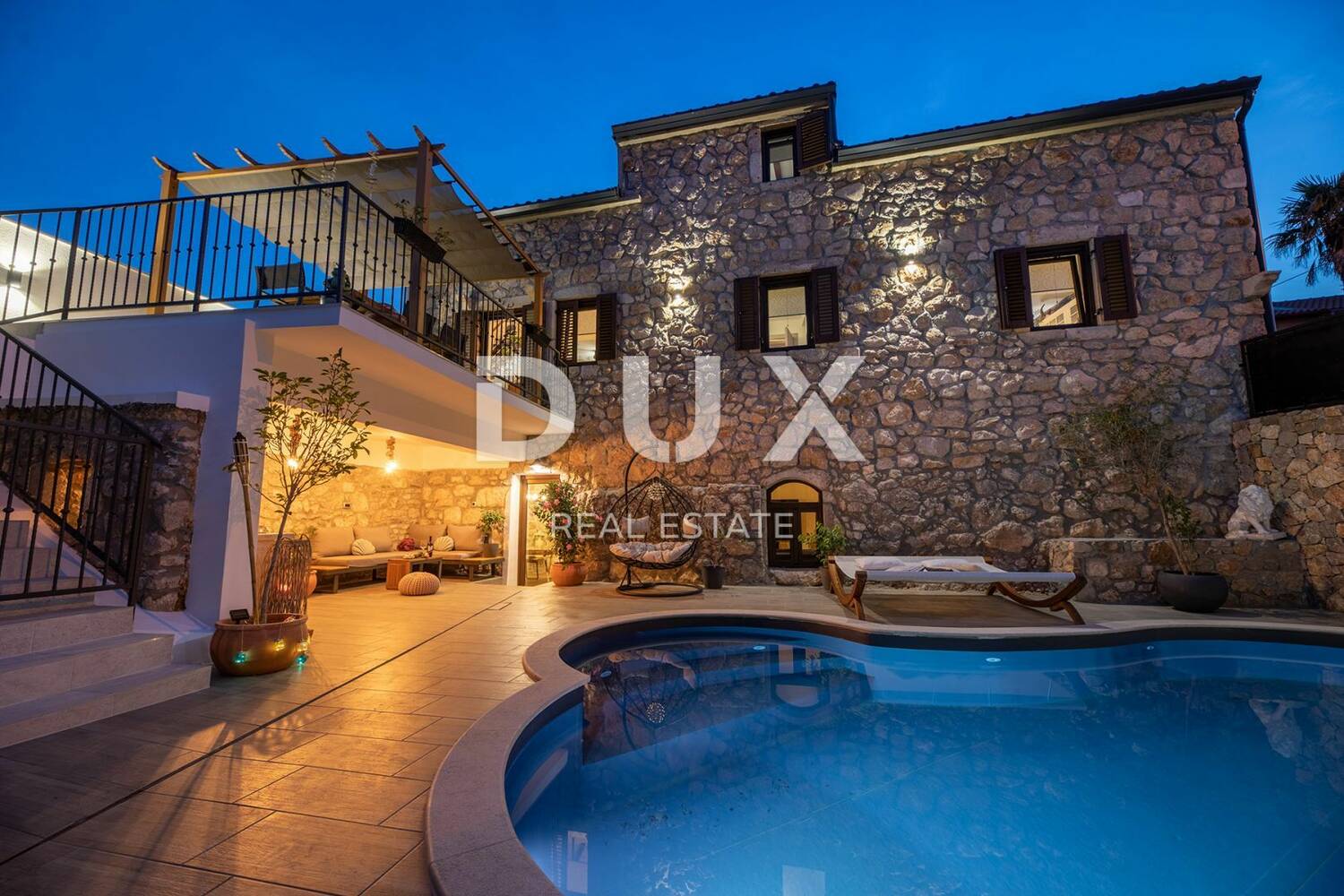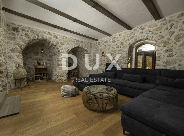 Otok Krk - Luksuzna kamena vila s bazenom, tek 1500 m od mora. U prizemlju objekta se nalazi konoba u kojoj možete provoditi ugodno društvo s prijateljima igrajući biljar ili pikado, dok se u prostoriji do nalazi sauna i teretana. S velike terase na prvom katu ulazi se u dnevni boravak, kuhinja s blagovaonicom, kupaonica i spavaća soba. Unutrašnjim stepenicama ide se na drugi kat gdje se osim galerije smjestio dnevni boravak, dvije spavaće sobe, kupaonica i predivna terasa. U ograđenom dvorištu nalazi se bazen, sunčalište s tušem i grill. Ovaj predivni objekt ima četiri parkirna mjesta. Ako ste željni mira i pravog odmora ovo je pravi objekt za vas.