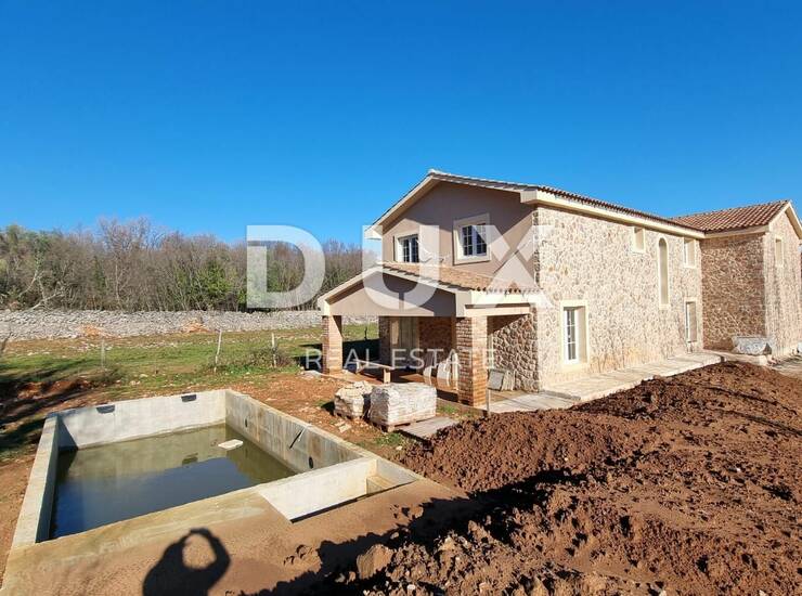 Otok Krk, Risika, novogradnja - kamena kuća s bazenom