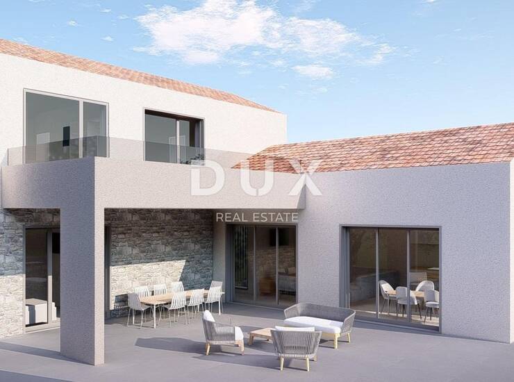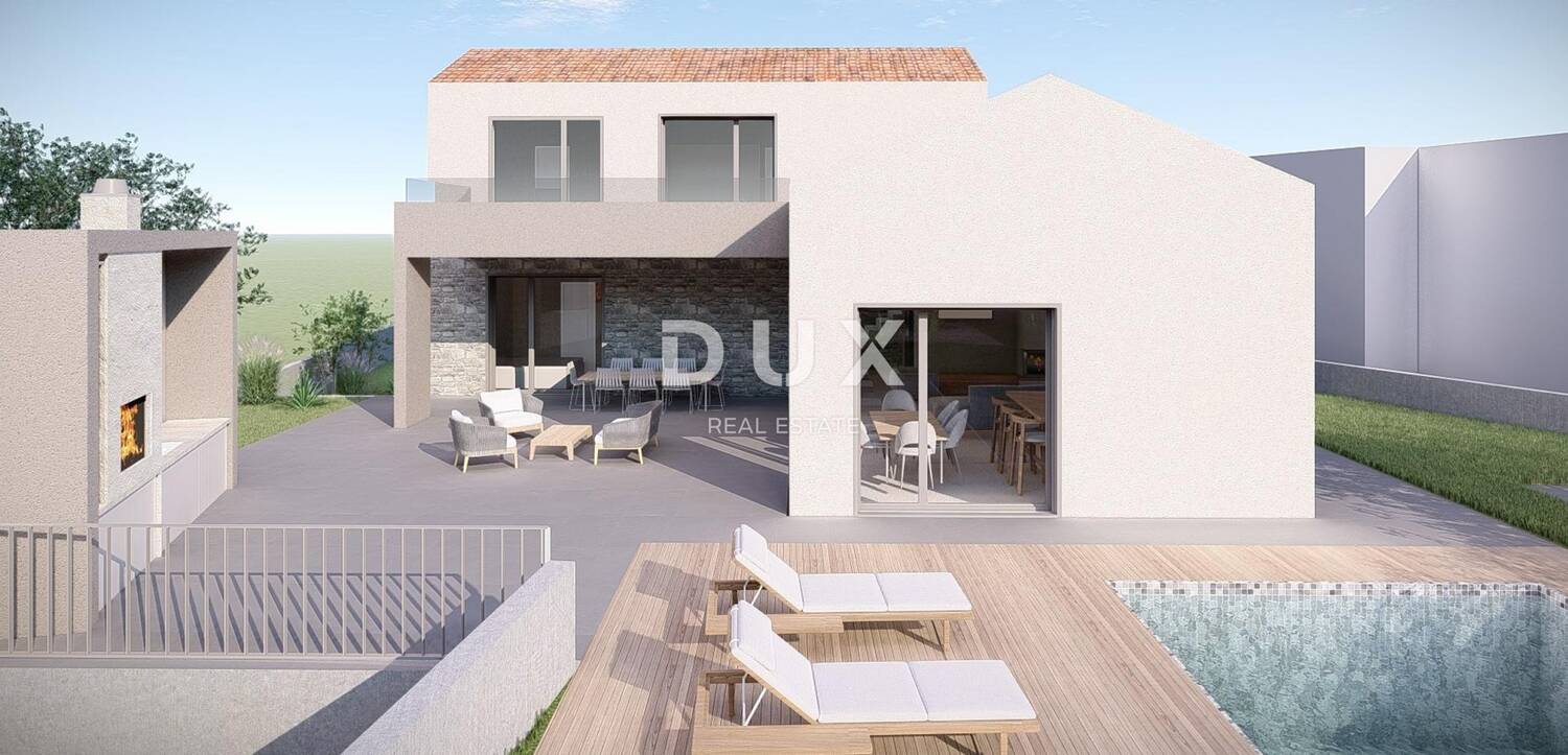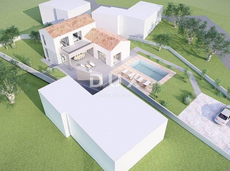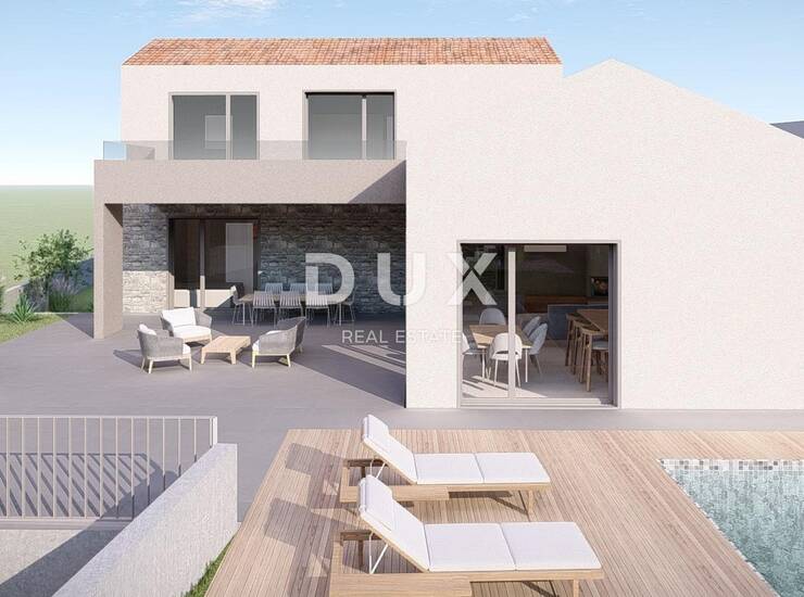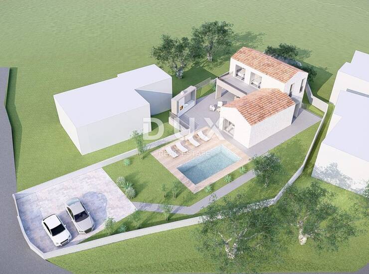 OTOK KRK, VRBNIK (okolica) - Građevinsko zemljište 916 m2 s projektom za kuću s bazenom
