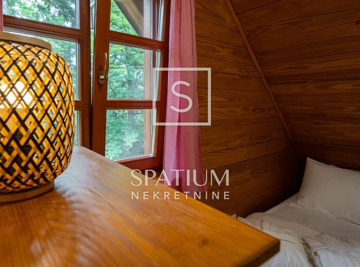 Smještena je na parceli od 2051m2, okružena prekrasnom šumom do koje vodi asfaltirani put.