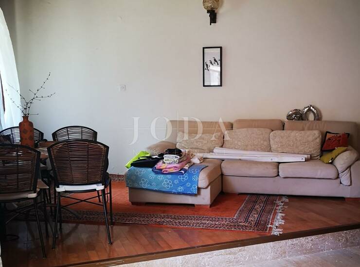 Na prvome katu nalazi se apartman sa dnevnim prostorom, kuhinjom, spavaćom sobom i kupaonicom. Na istoj etaži nalaze se još 3 spavaće sobe , dvije kupaonice i terasa. Nezavršeno potkrovlje površine 136m2 ima sve pripremljeno za adaptaciju, dovod vode, kanalizacije, električne instalacije.