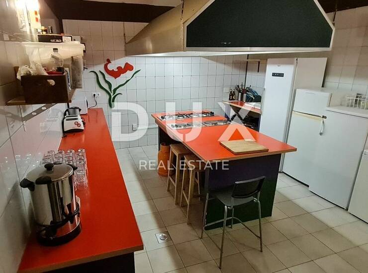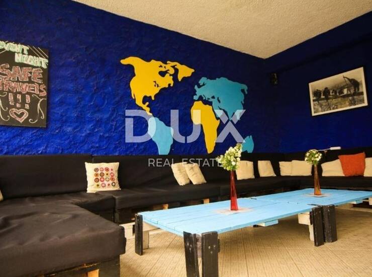 Prodaje su stambeno/poslovni objekt u Zadru u kojem uspješno posluje turistički hostel. Objekt ima 300 m2 stambenog prostora na dvije etaže i izgrađen je na parceli od 787 m2. Objekt se koristi za turistički najam i moguće je otkupiti i firmu u čijem je vlasništvu objekt. U prizemlju ovog atraktivnog objekta se nalaze 5 spavaonica, 3 kupaonice, 2 wc-a, kuhinja, bar, dnevni boravak i natkrivena terasa. Na 1. katu se nalaze 4 apartmana i dvije velike terase (75m2, 37m2). Hostel ima ukupan kapacitet od 48 ležajeva. Objekt ima 8 parkirnih mjesta unutar zatvorenog dvorišta. Kuća je statički ojačana 2023., fasada je 5 cm. Također, u dvorištu su dva bunara.