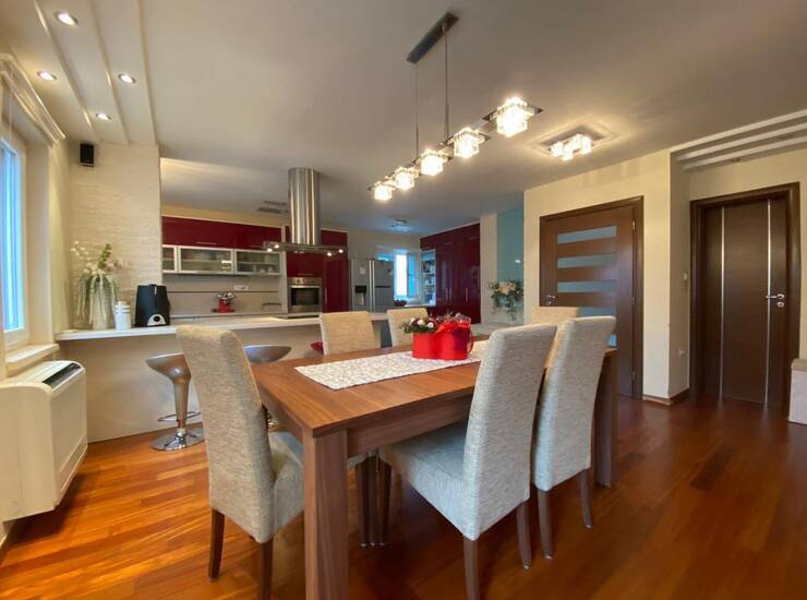 Prodaje se prostrana kuća u predjelu Smiljevac u Zadru. Objekt ukupne stambene površine 478,80 m2 izgrađen je na parceli od 481 m2. Sastoji se od podruma, prizemlja, dva kata i potkrovlja. U prizemlju se nalaze garaža, wellness prostorija, ljetna kuhinja i dodatni Wc koji su povezani s vinskim podrumom na donjoj etaži. Na prvom katu se nalaze četiri spavaće sobe i kupaonica. Na drugom katu je prostrani dnevni boravak, kuhinja i blagovaonica, jedna spavaća soba s pripadajućom kupaonicom i garderobom, te soba za igru. Potkrovlje ima 130 m2 nestambene površine. U dvorištu se nalazi vrt i privatni parking.
