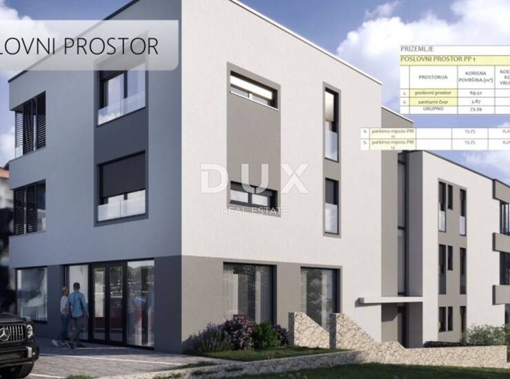 Smješten u prizemlju zgrade, prostor je idealan za različite djelatnosti – uredske poslove, ordinaciju, salon, trgovinu ili uslužne djelatnosti. Zahvaljujući velikim staklenim površinama i odličnoj vidljivosti s pristupne ceste, osigurana je izvrsna prirodna osvijetljenost i reprezentativan izgled poslovanja.