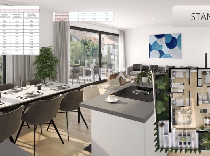 ZADAR, BELAFUŽA – moderan trosoban stan s vrtom, garažom i terasom