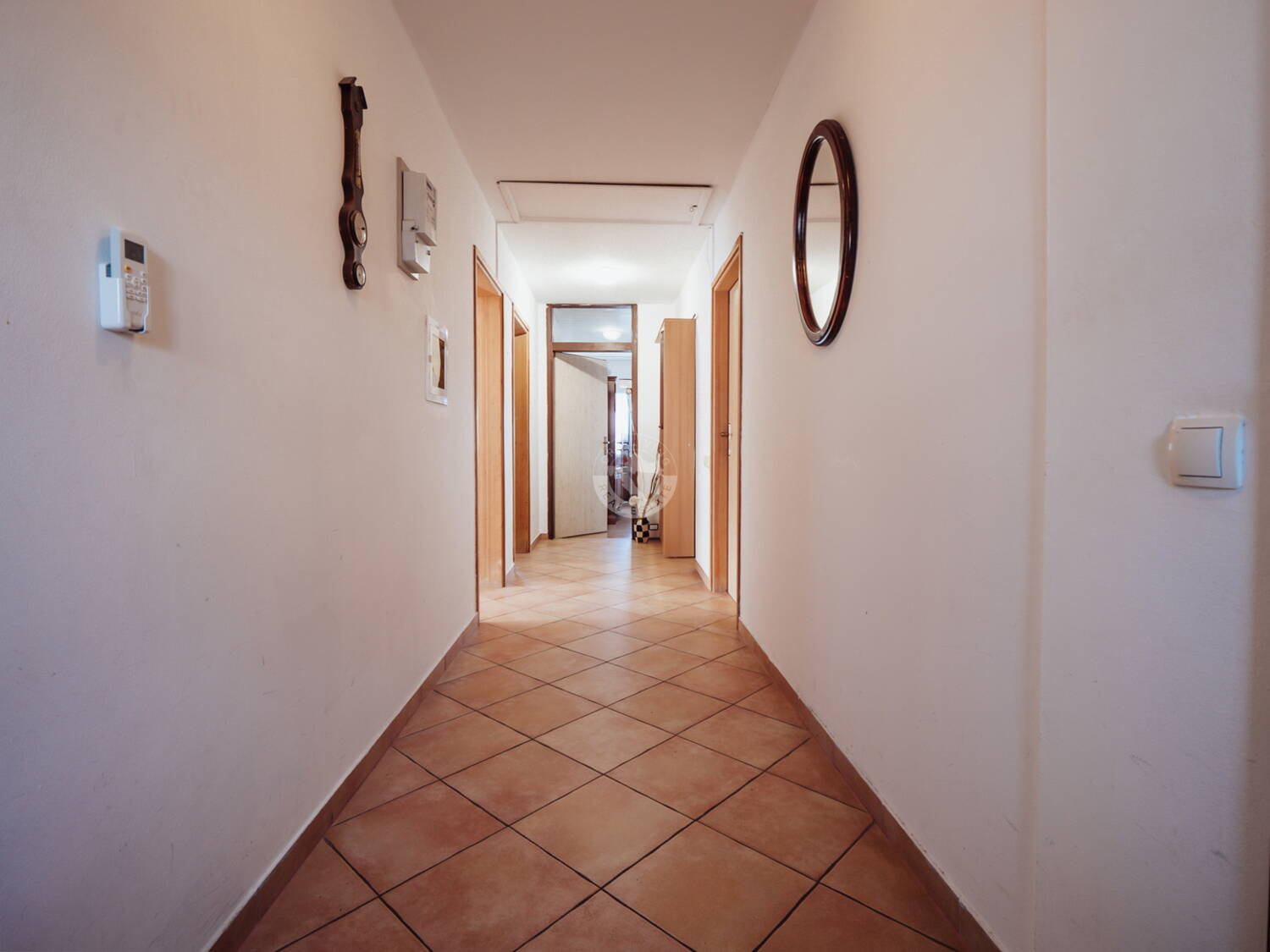 Veliki hodnik povezuje sve prostorije zasebno. Sobe su u cijelosti prostrane, što stanu daje otvoren i ugodan osjećaj prostora.