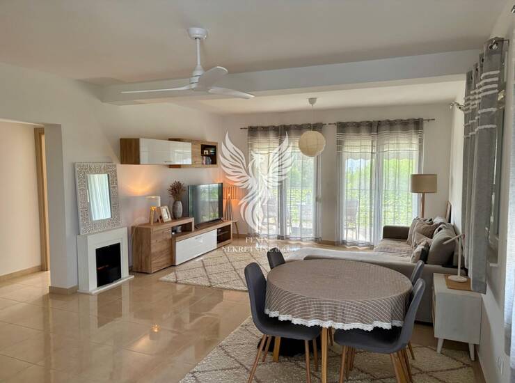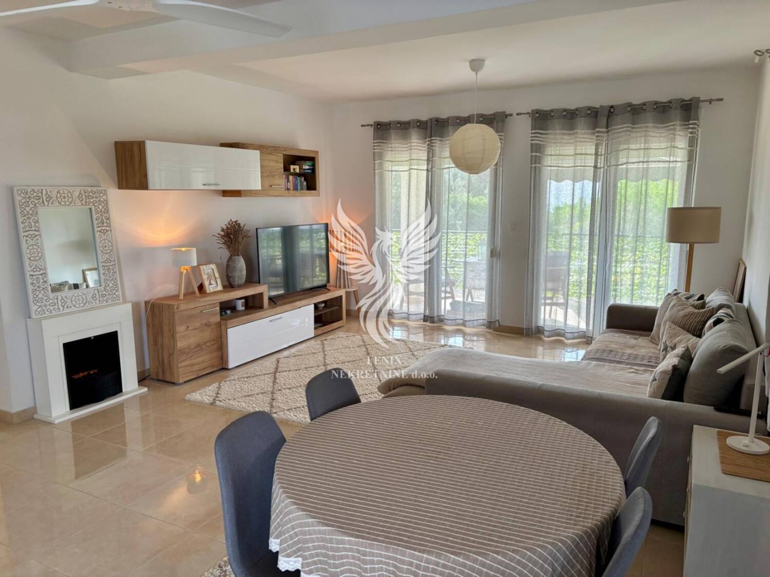 Stan je uređen, te se prodaje s namještajem, u vrtu također postoji priključak za vodu i vrtna kućica. Stan je klimatiziran i u svim prostorijama je provedeno podno grijanje.