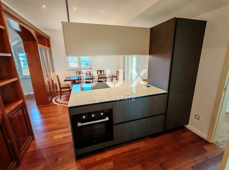 Enterijer je dizajniran s naglaskom na toplinu i eleganciju prirodnih materijala. Talijansko puno drvo i visokokvalitetni parket dominiraju prostorom, stvarajući osjećaj luksuza i ugode. Stan ima tri vrste grijanja – klima uređaj, centralno grijanje te kaljenu peć koja brzo zagrije cijeli prostor. Dodatna prednost su čak pet ostava za kapute, obuću i ostale stvari, osiguravajući savršenu organizaciju doma.