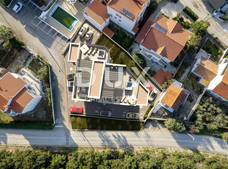 Prodaje se penthouse s impresivnim pogledom na more u mjestu Petrčane pokraj Zadra. Stan ukupne stambene površine 67,33 m2 sastoji se od dvije spavaće sobe, dnevnog boravka, kuhinje i blagovaonice, WC-a, kupaonice, hodnika i terase od dodatnih 10,02 m2. Stanu pripada i prostrana krovna terasa od 70 m2 te dva privatna parkirna mjesta u dvorištu zgrade. Ukupna korisna površina stana zajedno sa svim pripacima iznosi 186,05 m2 (K.V. 97,78 m2).