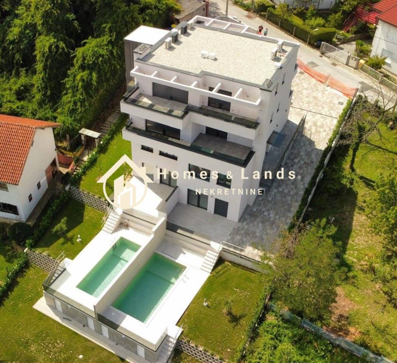 Stanovi u prizemlju su dvoetažni i imaju velike, privatne vrtove s bazenom