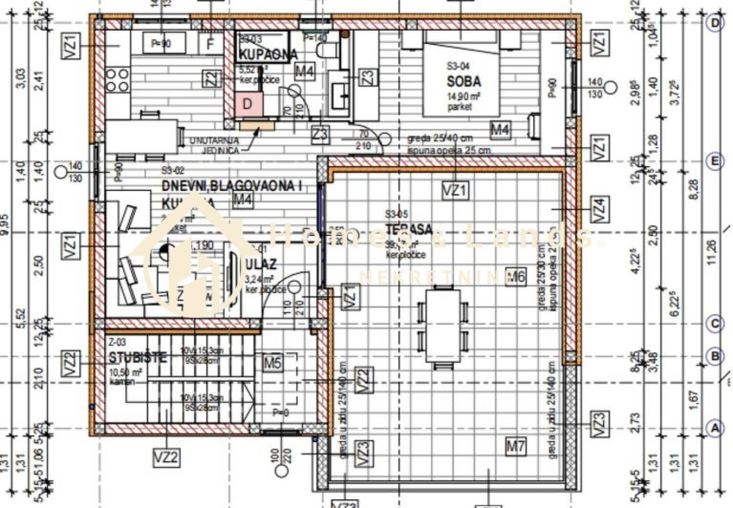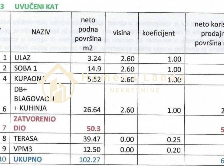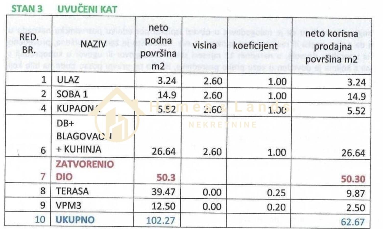 Površina: ukupno 102,27 m2 , 62,67 m²-obračunski