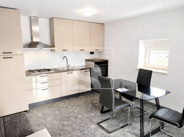 Kuća se prodaje potpuno namještena i spremna za useljenje, bez potrebe za dodatnim ulaganjima. Interijer je oplemenjen keramičkim podnim oblogama te stropovima s drvenim gredama koji prostoru daju poseban šarm i toplinu. Grijanje i hlađenje osigurano je putem klima uređaja.
