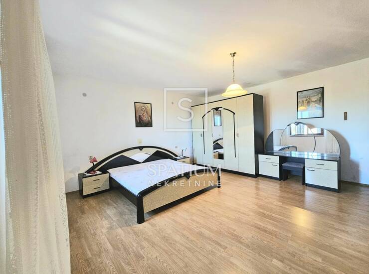 Kuća ima obnovljenu fasadu, krov te nadstrešnicu površine 45 m² u prizemlju, smještenu ispred ulaza u kuću, koja pruža ugodan boravak na otvorenom tijekom ljetnih mjeseci. S desne strane kuće nalazi se dodatna nadstrešnica površine 47 m², nekada korištena za poljoprivredne potrebe. Iza kuće smještene su dvije spojene garaže i bivša štala ukupne površine 88 m². Okućnica je uređena zelenilom, cvijećem i voćkama.