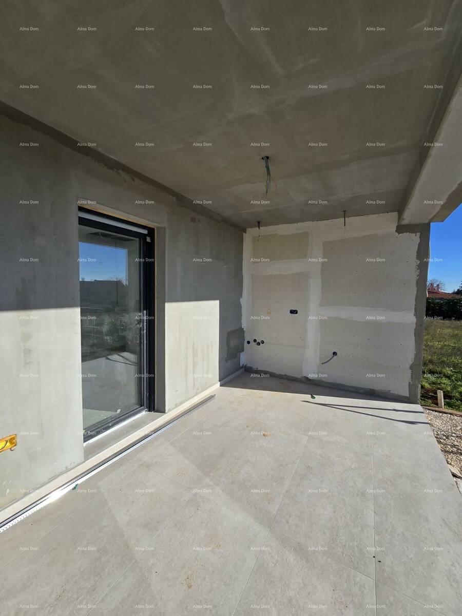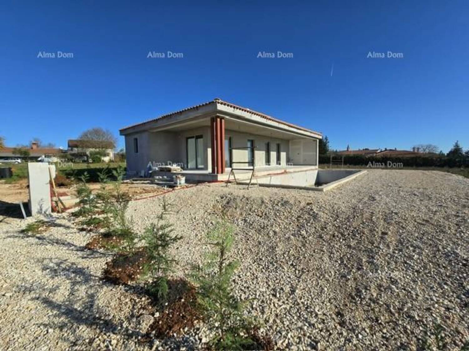 Ova lijepa i moderna samostojeća kuća nalazi se na mirnijoj lokaciji, okružena zelenilom, samo 5 minuta autom od centra Žminja.