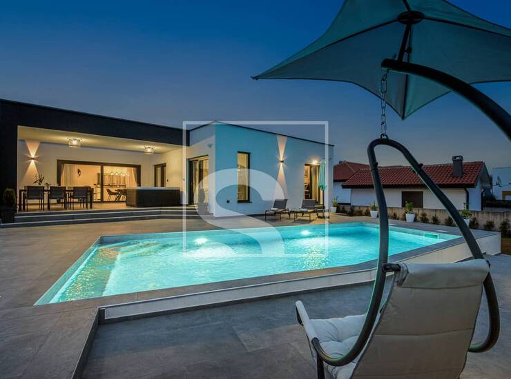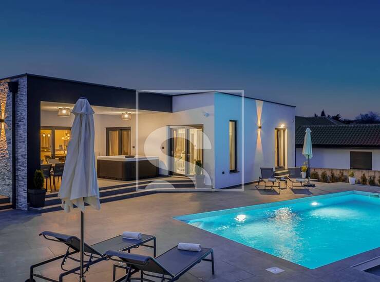 Posebnu vrijednost ovoj nekretnini daje njezin impresivan wellness sadržaj. Privatni bazen, jacuzzi, sauna i moderno opremljena teretana pružaju potpun doživljaj luksuza i opuštanja, stvarajući vlastitu zonu mira i regeneracije. Svaki detalj vile pažljivo je osmišljen – od čistih arhitektonskih linija do suvremenog dizajna koji savršeno spaja estetiku i praktičnost.