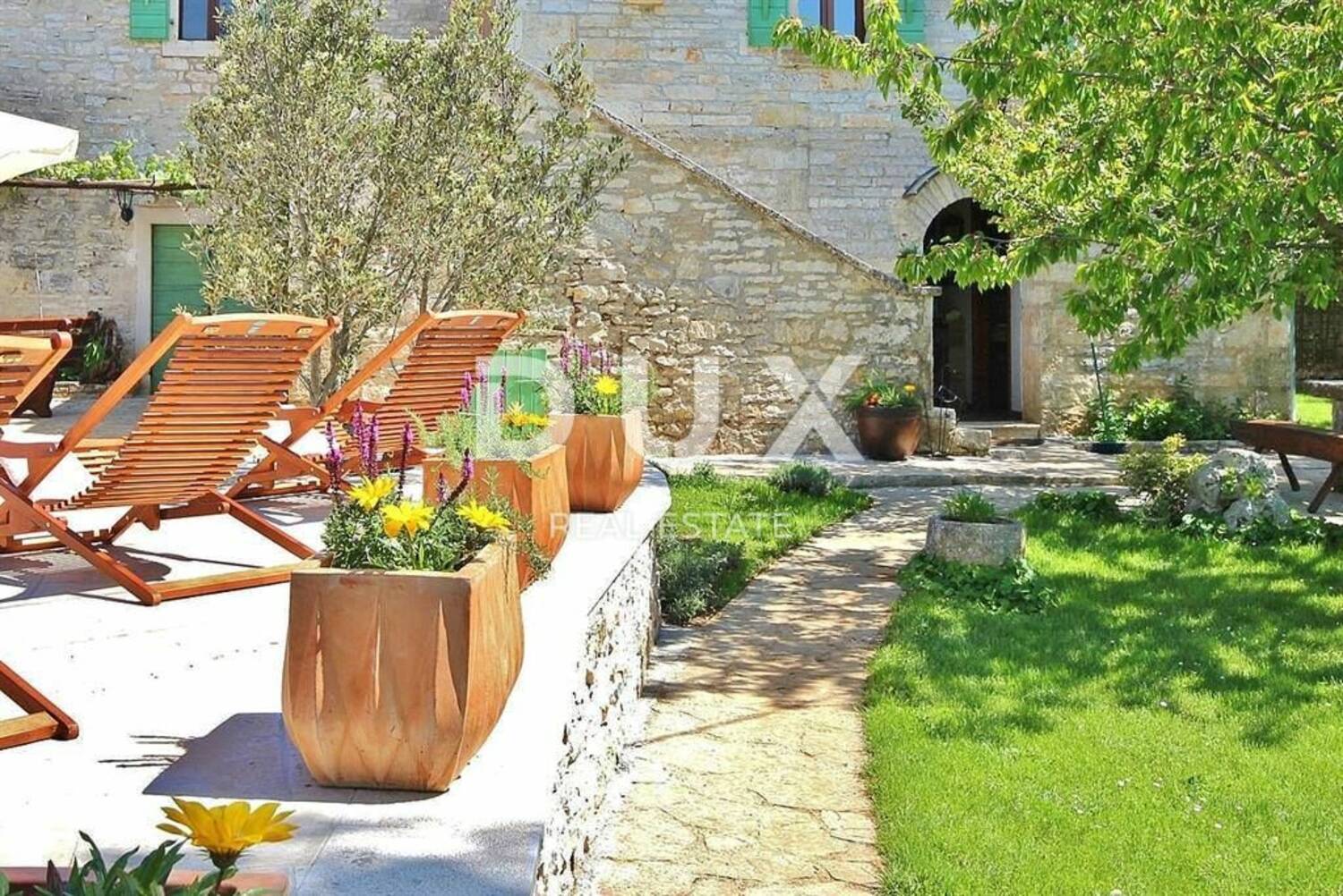 Zemljište površine 548 m², ograđeno kamenim zidom, jamči privatnost i mir.