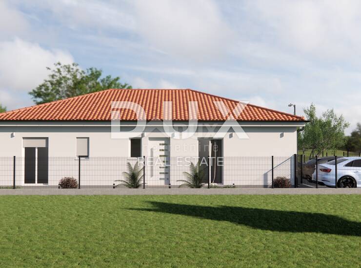 Prodaje se samostojeća montažna prizemnica u Žminju. Kuća je trenutno u izgradnji i ima ukupno 135 m2. Sastoji se od prostranog dnevnog boravka s kuhinjom i blagovaonicom, stvarajući otvoreni prostor idealan za obiteljska okupljanja i zabavu. Dvije prostrane spavaće sobe, svaka s vlastitom kupaonicom, pružit će vam privatnost i udobnost.