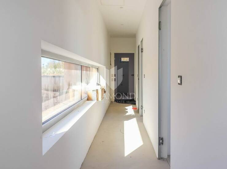 U gradnji su korišteni najbolji i najsuvremeniji materijali, s naglaskom na kvalitetu, trajnost i komfor. Otvori su izvedeni u Cortizo IZO sustavu s prekidima toplinskih mostova, prozori imaju ugrađene rolete, a velika staklena stijena u dnevnom boravku dodatno je zaštićena žaluzinama. Podovi u cijelo