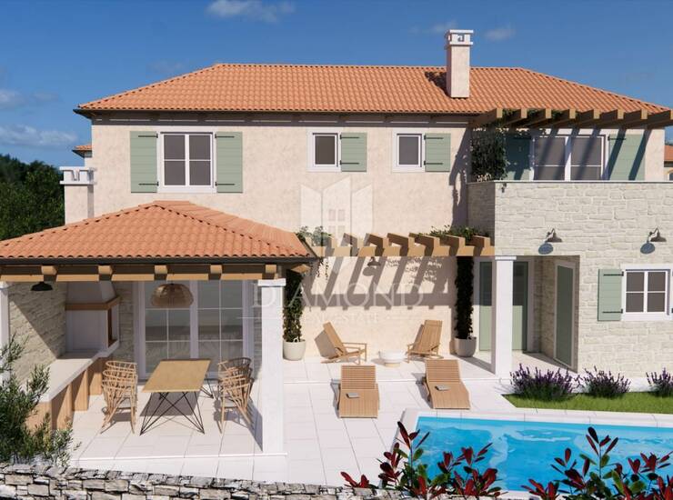 Žminj, okolica, nova kuća sa bazenom u seoskoj idili