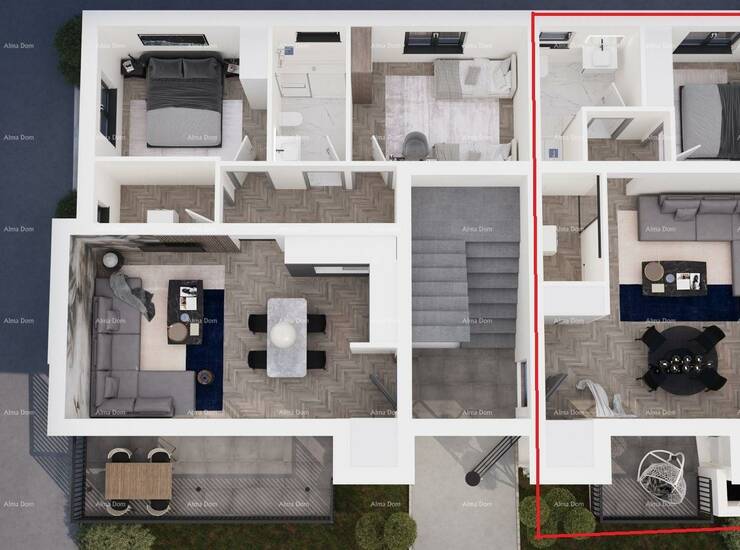 Stan se prodaje po principu "ključ u ruke" - nenamješten (također bez tuš kabine i klima), ali s potpuno završenim unutarnjim uređenjem.