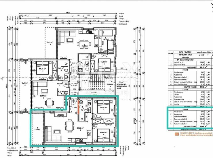 Predmet prodaje je stan ukupne površine 68 m² koji se nalazi u prizemlju zgrade.