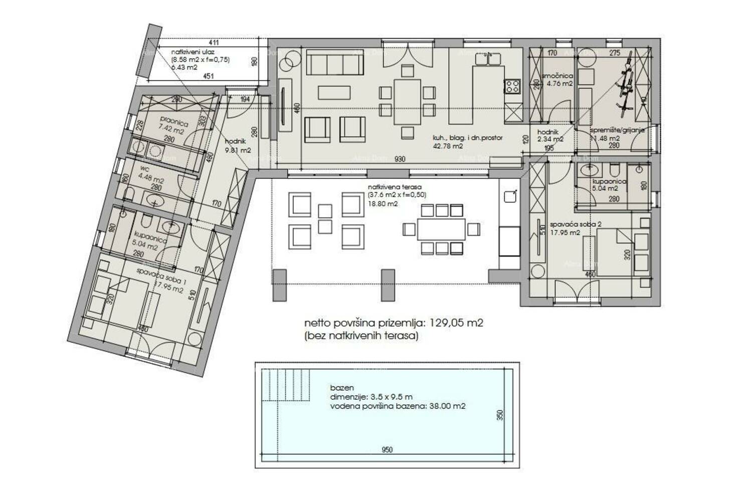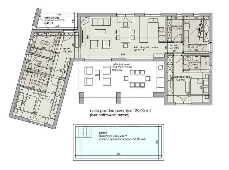 -Neto površina kuće: 129 m² unutarnjeg prostora