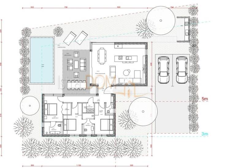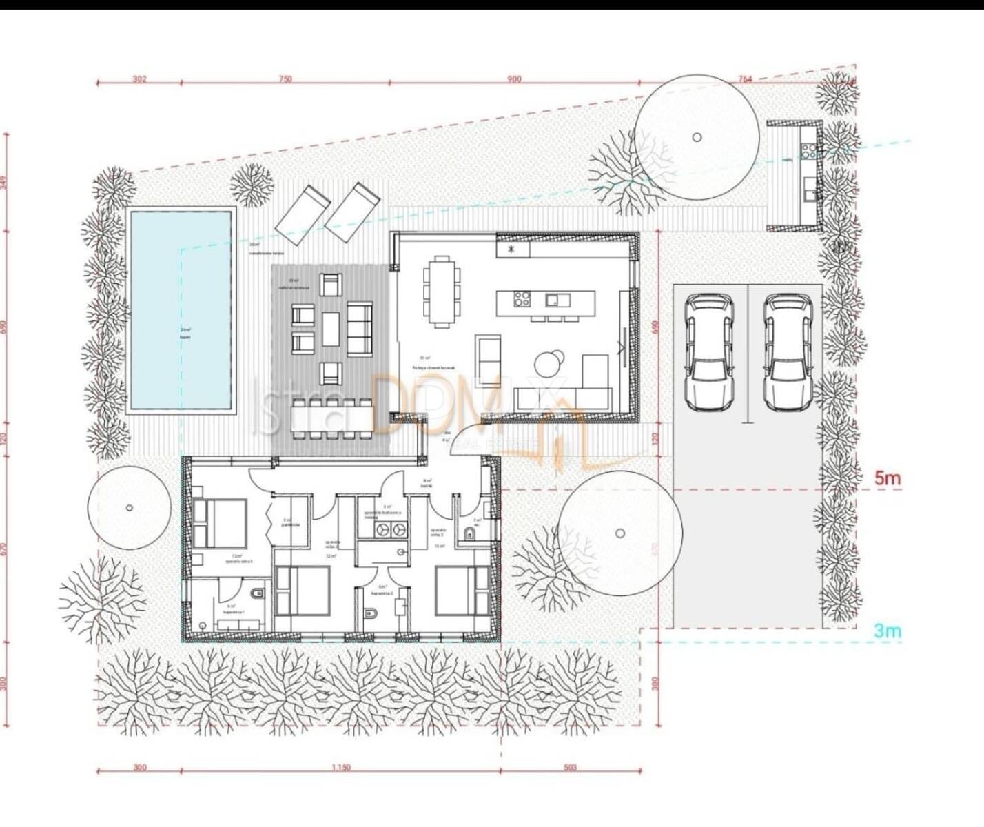 Za građevinsku parcelu ishođena je pravomoćna građevinska dozvola te postoji gotov projekt za kuću modernog dizajna i vanjskim bazenom. Površina objekata iznosi 149 m².