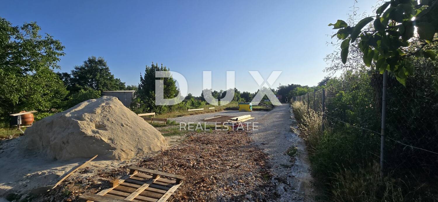 Parcela je već pripremljena za gradnju, a na njoj su u tijeku radovi. Struja će uskoro biti dovedena – priključak je već plaćen na 7,36 kW (monofazna), a voda je dovedena do parcele. Iskopi i zemljani radovi su završeni, postavljena je bio septička jama, a temelji za bočne betonske podzide visine 50 cm već su izliveni i spremni za daljnje radove. Također, šaht za vodomjer je iskopan i ozidan.